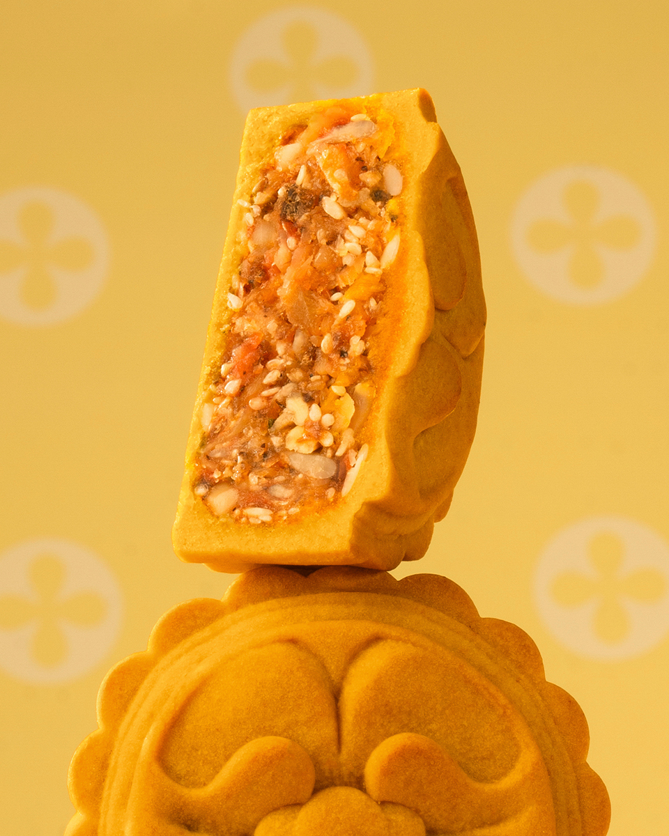 Với nhân thập cẩm quen thuộc, Bakes lại biết cách “thay áo mới” để cho ra đời vị thập cẩm hải sản sốt XO – chiếc bánh của sự sum vầy sang trọng. Nhân hòa quyện hạt, mứt, tôm khô, sò điệp, lạp xưởng hải sản cùng sốt XO đậm đà, chính giữa bánh là lòng đỏ trứng muối tròn trịa như vầng trăng rằm, tượng trưng cho sự đủ đầy, quây quần viên mãn.
