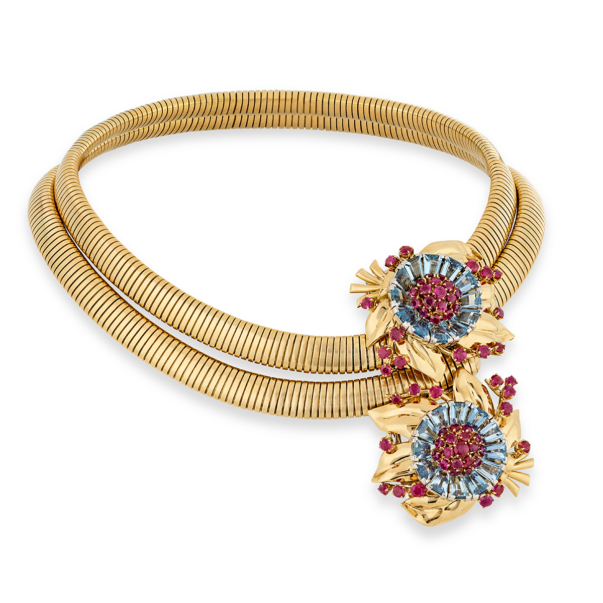 Những bó hoa duyên dáng này tiếp nối dấu ấn của một biểu tượng từ Van Cleef & Arpels: Passe-Partout. Được cấp bằng sáng chế vào năm 1938, tuyệt tác trang sức này thường bao gồm những họa tiết hoa lớn đầy màu sắc và được lắp ráp trên chuỗi Tubogas bằng vàng. Đằng sau những tràng hoa là một chiếc kẹp ẩn cho phép đeo món trang sức ở nhiều vị trí khác nhau: như một chiếc vòng cổ ngắn hoặc dài, một chiếc vòng tay, thắt lưng hoặc kẹp, theo truyền thống trang sức có thể biến đổi của Maison. Cũng trong giai đoạn này, nhiều thiết kế kết hợp hoa và đá màu đã xuất hiện, tiêu biểu như các tác phẩm Hawaii. Hồng ngọc, đá sapphire và hoa kim cương tô điểm cho nhẫn, kẹp và khuyên tai.