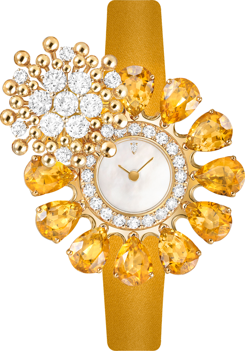 Tựa như những bông hoa vừa nở, các thiết kế trang sức và đồng hồ kết hợp những cánh hoa làm từ đá quý tinh xảo, nhụy bằng kim cương và lá bằng vàng để tạo nên những tác phẩm lấp lánh. Gợi lên hình ảnh thiên nhiên tươi tốt, ngập tràn ánh nắng, mỗi thiết kế đều thể hiện một đài hoa đang nở rộ.
